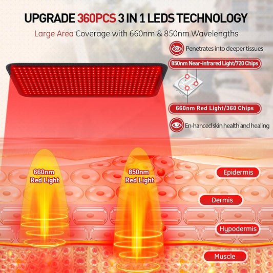 Red Light Therapy Mat, 360PCS Large Red Light Therapy Pad for Body with 660Nm 850Nm near Infrared Light Redlight Therapy Devices Mats Belt for Back Waist Shoulder Discomfort with Timer Pulse